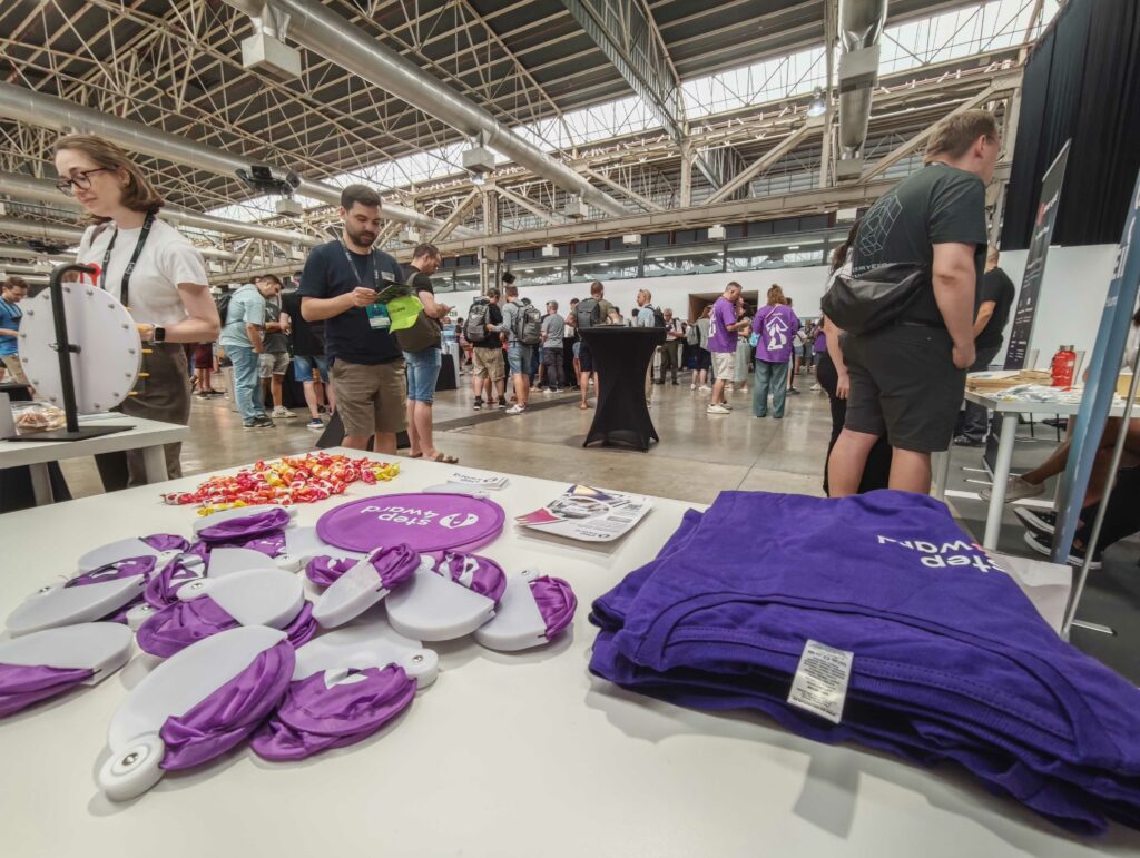 ¡Este año contamos con una sorpresa adicional que tuvo muy buena acogida entre los visitantes de nuestro stand: abanicos con el logo de Step4ward! Gracias a la recaudación de fondos conseguida con nuestra cuenta de open collective.